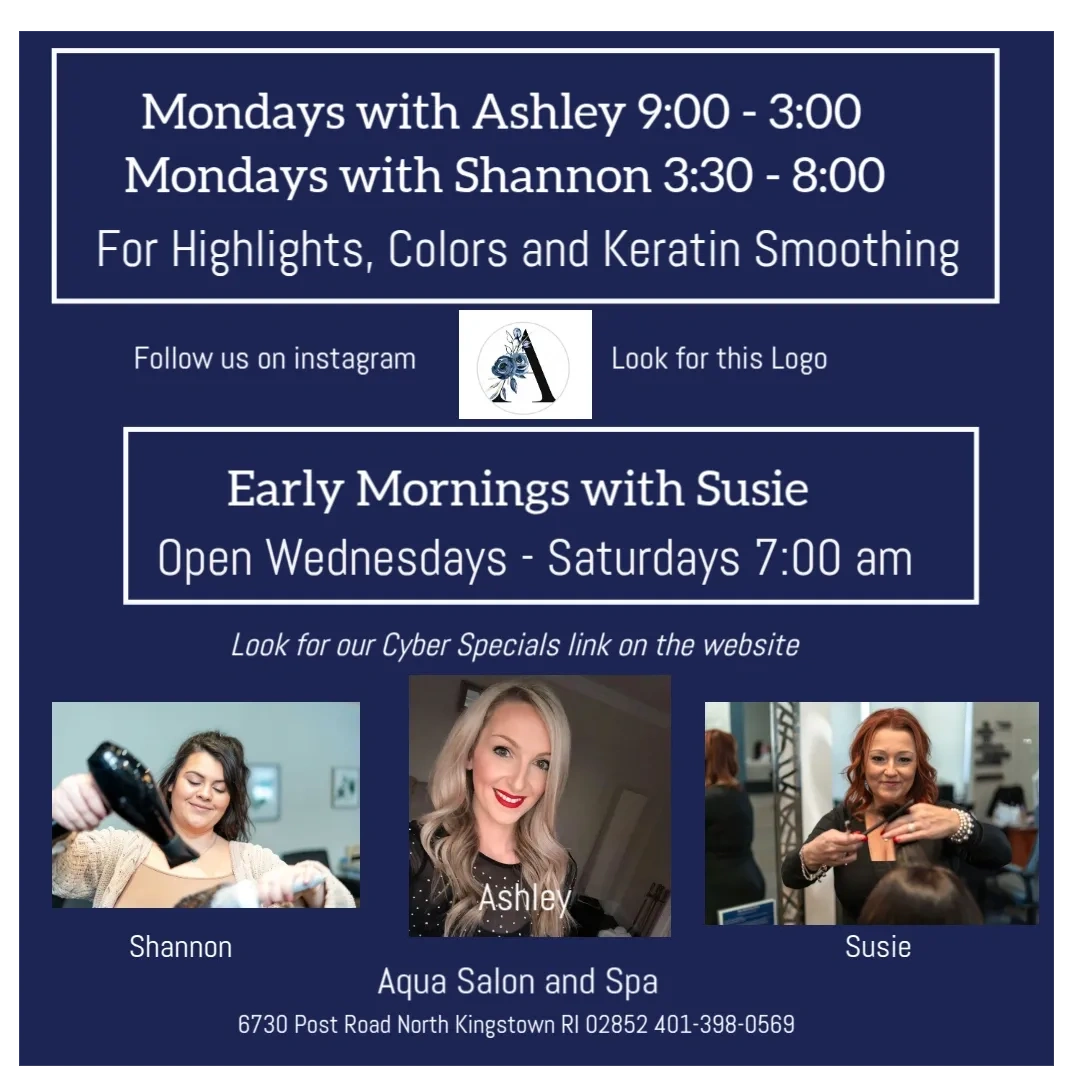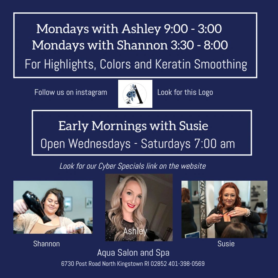 (401) 398-0569 aquasalonandspa3@gmail.com